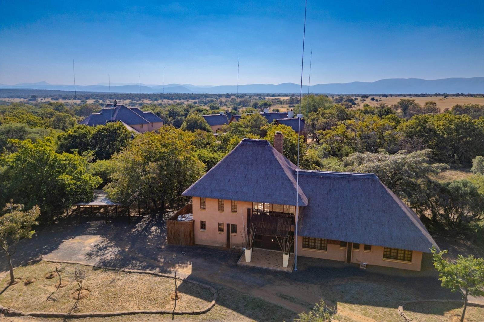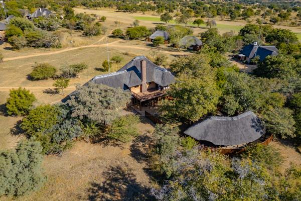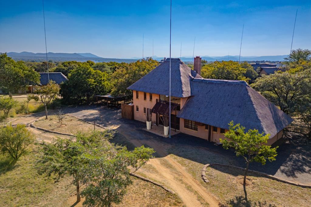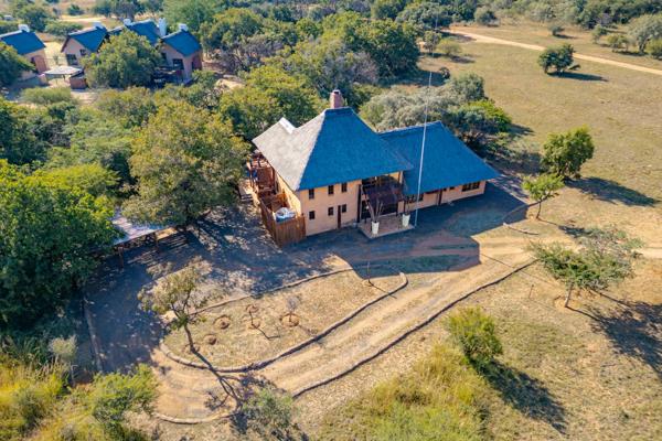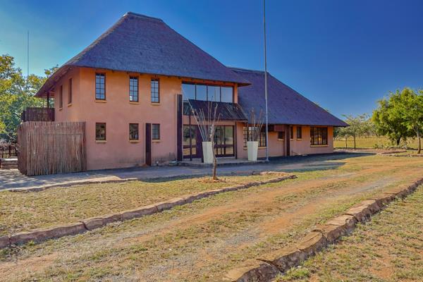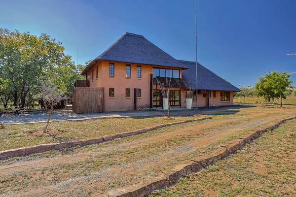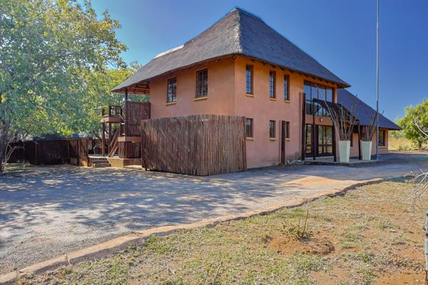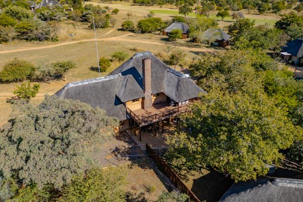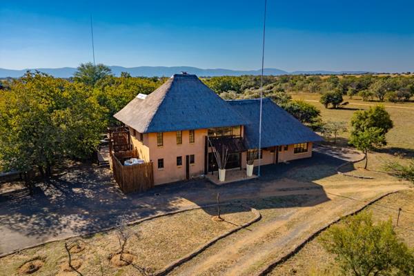 A gorgeous thatched house, nestled in the glamorous bushveld and Golf estate of the Waterberg Mountains, where indoor living meets outdoor living The house has 4 bedrooms and 2 bathrooms and are fully air-conditioned, ideal for a small family or group of friends The kitchen, dining room and lounge area are all open planned with a gorgeous fireplace. There is a scullery with extra pantry cupboards for storage and space for extra appliances. Sliding doors extend around the entire main living area that opens up onto a covered outside deck with a plunge pool, the deck leads down to a fire pit and charcoal braai area for extended entertainment space. The loft upstairs hosts a tv room with guest toilet which leads out onto a patio with extending views of the mountains. There is a carport for 2 cars.