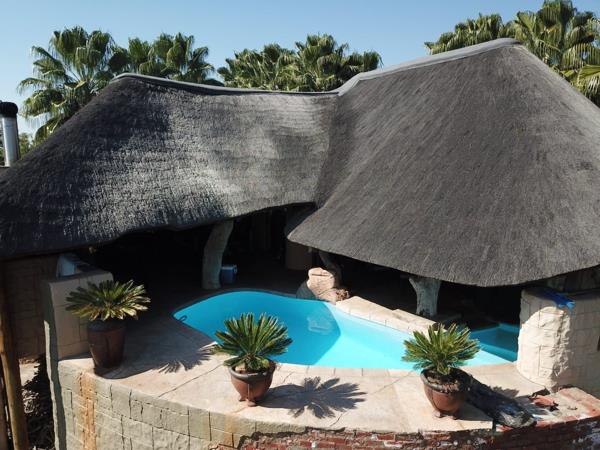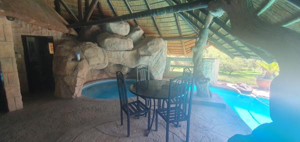 The lodge again is quite unique in appearance and offers three bedrooms, two bathrooms, lounge/recreation area, bar, kitchen, swimming pool and large jacuzzi, all in a class of its own which needs to be seen to really appreciate the ambience of this venue.