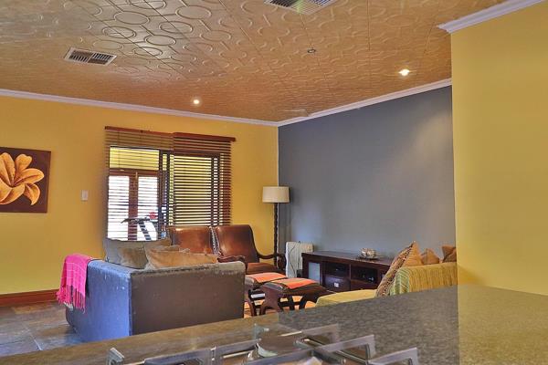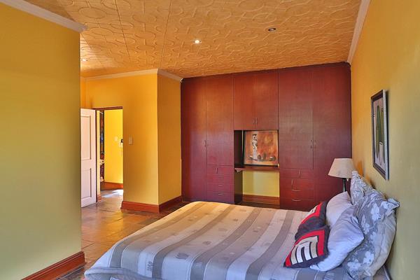 Kitchenette upstairs for the luxury of quick coffee and an upper lounge/ tv room which leads to a balcony. Alarm system in- and outside. 2 automated garages, 1 with direct access into the house. Access gate solid and plastered boundary wall. Ample built-in cupboards.