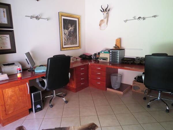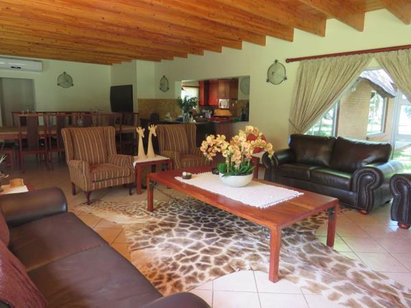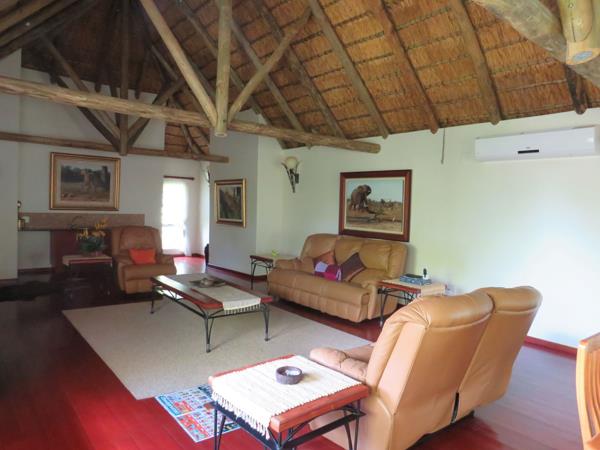 The farm itself is a masterclass in design and functionality, with no expense spared when it comes to furnishings, equipment, and upkeep. The owners passion for perfection shines through in every corner of the farm, from the lodge to the owners house, where elegance meets comfort in an extraordinary way. As you approach the main house, you are greeted with a sense of awe. Inside, the spacious, high-ceilinged rooms are impeccably decorated, creating a refined atmosphere. The modern kitchen, seamlessly integrated with the open-plan living and dining area, includes a built-in braai ideal for hosting guests in style. A separate scullery and hobby/storage room further elevate the functionality of the home. Step outside, and youll find manicured gardens and a stunning entertainment lapa that overlooks a sparkling pool.