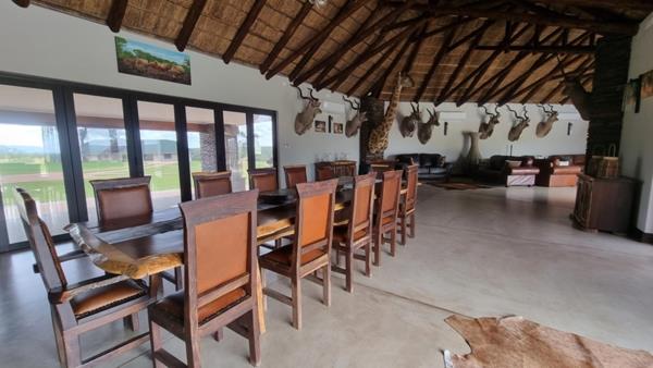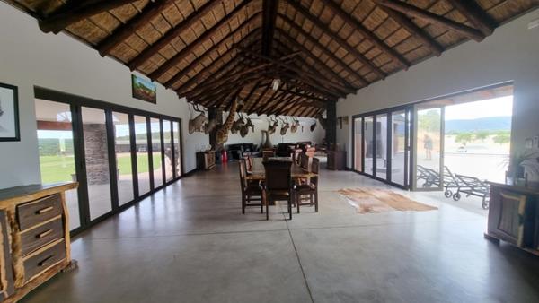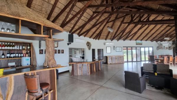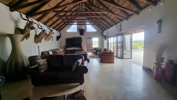 The main lodge is a newly constructed lifestyle Lodge!! It has a large open plan Lounge, Dining area with a Kitchen and a Lounge area. Large Doors opens unto a verandah with a deck. There is a sunken BBQ Boma and an Infinity Pool.