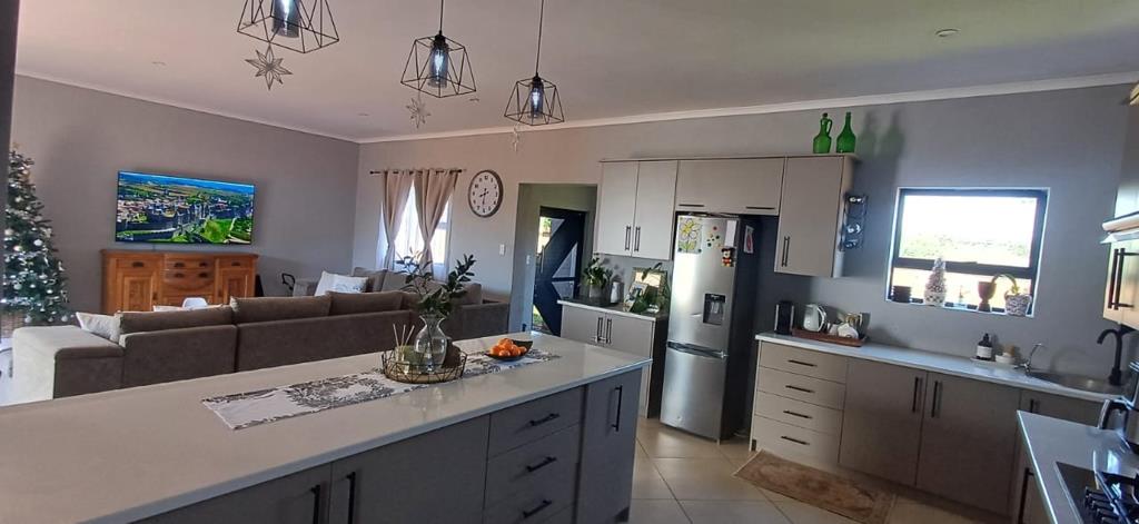 Discover this spacious residential property for sale in the suburban heart of Lephalale, South Africa. This inviting home presents a modern aesthetic with a light gray exterior. The interior boasts a contemporary open-plan layout, seamlessly connecting living spaces with a modern kitchen with sleek countertops, ample cabinetry, and functional island, perfect for both daily living and entertaining. Gas stove and electric oven with extractor fan. Separate laundrypantry.