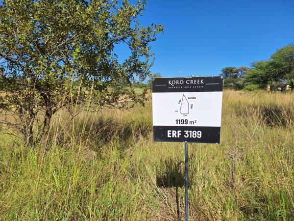 Exclusive Opportunity to Build Your Dream House. A vacant 1199m stand at Koro Creek awaits you to realize your dream home. Koro Creek Golf Estate is close enough to civilization to make the drive pleasantly quick, but far enough into the bushveld to offer a fantastic, de-stressing getaway from the pressures and frantic pace of everyday life.