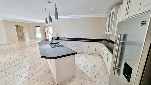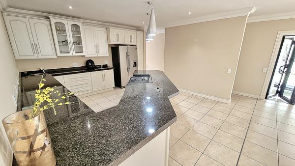 The entertainment area is a showstopper, opening up with stacker doors to a covered patio with a built-in braai, overlooking the backyard. Whether hosting a braai with friends or simply enjoying the tranquility of your surroundings, this space is designed for relaxation.