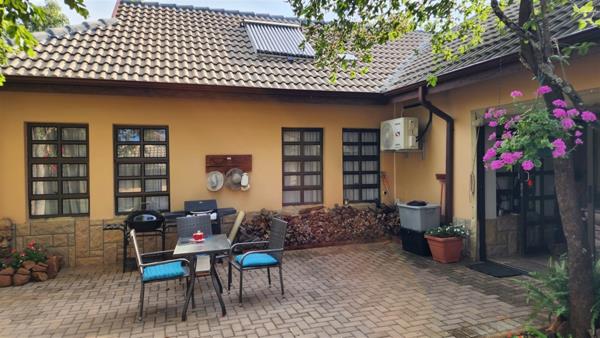 This charming free-standing unite offers three well-sized bedrooms, including a main bedroom with an en-suite bathroom for added convenience. A guest bathroom with a shower, toilet, and basin serves the additional bedrooms. The spacious kitchen features built-in cupboards, making meal prep a breeze. Enjoy the open plan kitchen, dining room and outdoor living on the patio with a built-in braai, overlooking the well-established private garden. A double garage provides secure parking, and the homes prime location as a corner unit provides extra privacy.