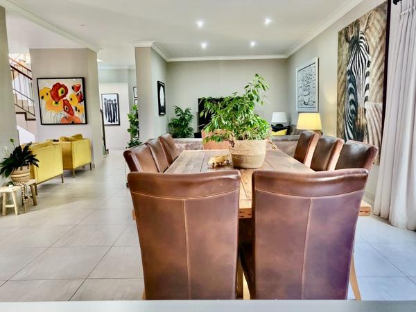 Upon entering, you''re greeted by a grand entrance that sets the tone for the sophisticated living spaces beyond. A formal lounge provides a refined retreat, while the TV lounge and open-plan dining room create a warm and inviting atmosphere for family gatherings. The indoor braai area, with stackable doors opening to the beautifully landscaped garden and sparkling pool, makes entertaining effortless.