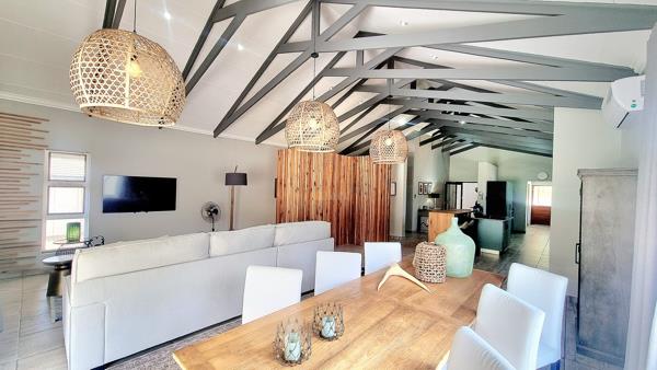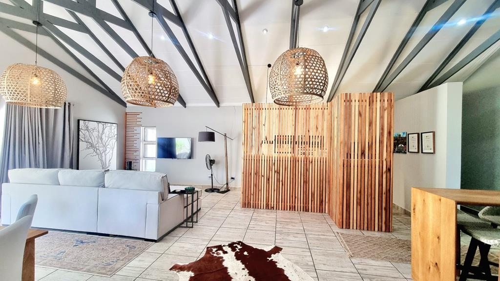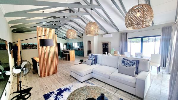 This home is built for effortless entertaining and relaxation, with an expansive open-plan living area that flows onto a covered stoep with an outdoor braai. From here, you overlook the boma area and manicured lawn, a perfect setting for unforgettable evenings under the African sky. A separate office space provides an exclusive, private retreatideal for remote work or creative pursuits.