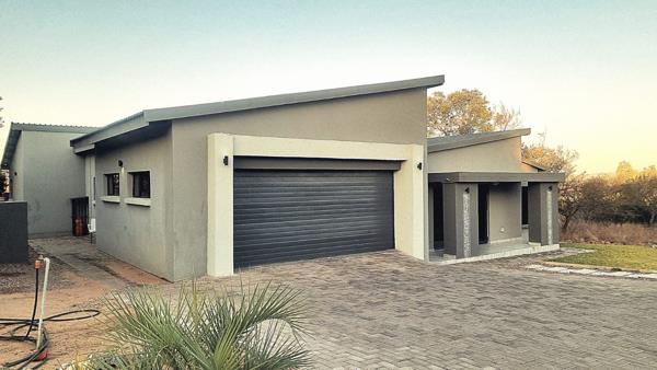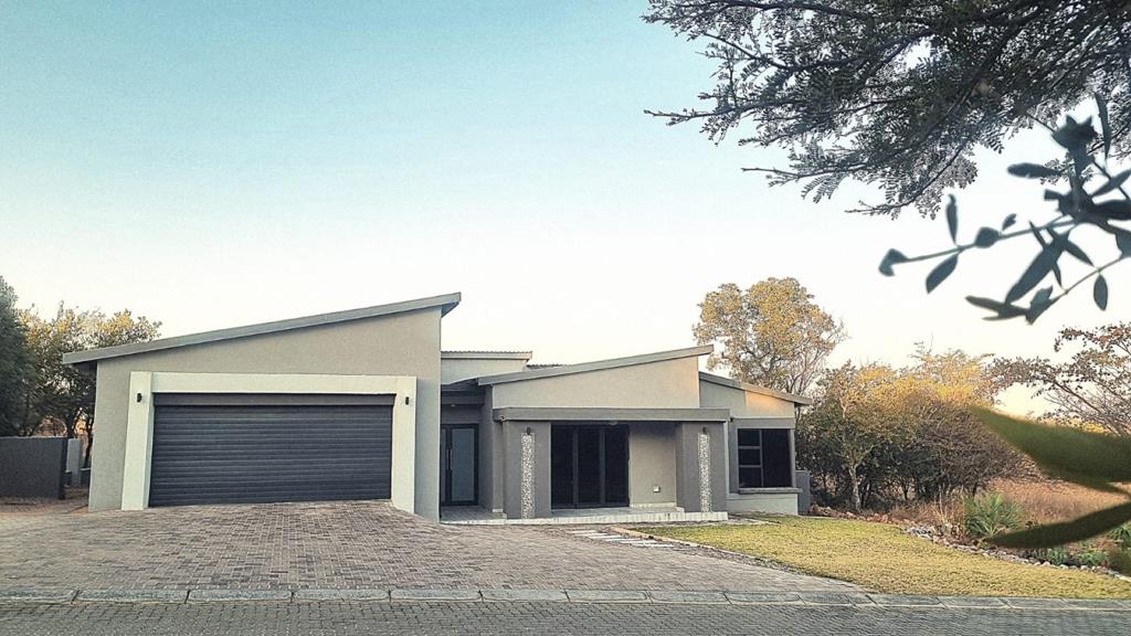 From the moment you arrive, youre welcomed by a sleek facade, pitched rooflines, and soft natural colours that mirror the bushveld around you. Inside, the open-plan design is spacious and filled with natural light, enhanced by large stacker doors and neutral porcelain tiles that extend a sense of seamless indoor-outdoor flow. A state-of-the-art kitchen with gas stove and modern wood-grain cabinetry flows into elegant living areas that are perfect for entertaining or relaxing in quiet luxury.
