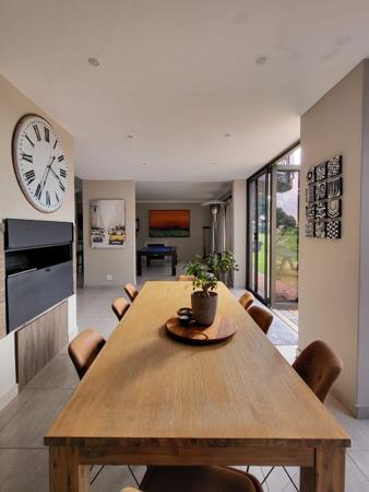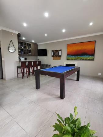 From the moment you enter, youre greeted by light-filled open spaces that invite you to relax and unwind. The flowing open-plan layout connects two elegant lounges, a built-in indoor braai, and a stylish bar area, creating the perfect setting for effortless entertaining. The gourmet kitchen is a chefs delight, featuring a large island, gas hob and oven, and a separate scullery and laundry for everyday convenience.