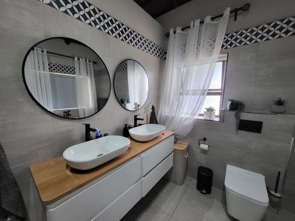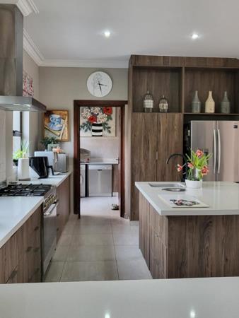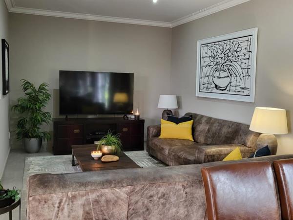 Step inside to discover light-filled, open spaces that invite relaxation and effortless living. The flowing open-plan layout connects two elegant lounges, a built-in indoor braai, and a stylish bar area, creating the ideal setting for entertaining. The gourmet kitchen features a central island, gas hob and oven, and a separate scullery and laundry for everyday convenience.