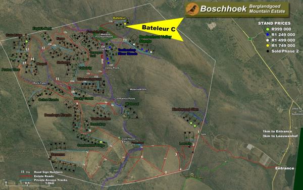With almost 90% of the estate being common property, owners dont only own their own full title 1-2 hectare stand, but also the whole of Boschhoeks almost 1500 hectares. The total building footprint on the estate is only around 0.25% (a quarter percent). The other 99.75% is unadulterated nature. Despite this, current stand prices are limited to between R1 mil and R1.75 mil including VAT.