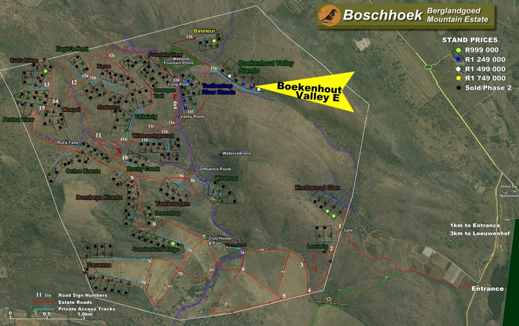 With almost 90% of the estate being common property, owners dont only own their own full title 1-2 hectare stand, but also the whole of Boschhoeks almost 1500 hectares. The total building footprint on the estate is only around 0.25% (a quarter percent). The other 99.75% is unadulterated nature. Despite this, current stand prices are limited to between R1 mil and R1.75 mil including VAT.