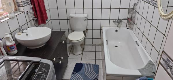 Other bathroom is large with enough space for the washing machine.