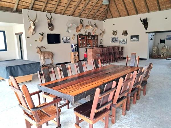 The heart of the farm features a spacious and secure 8-bedroom, 5-bathroom home with a built-in braai, two garages, and two safe rooms for added peace of mind. The garden is beautifully maintained, with sweeping views over a dam, and free Wi-Fi ensures modern connectivity in a tranquil rural setting.