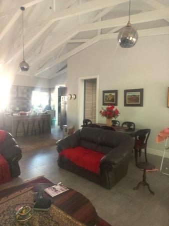- Open-plan living & dining area with high ceiling with sliding doors and fly screens