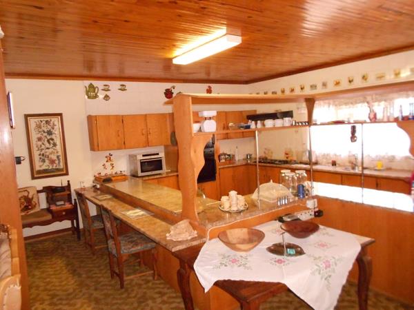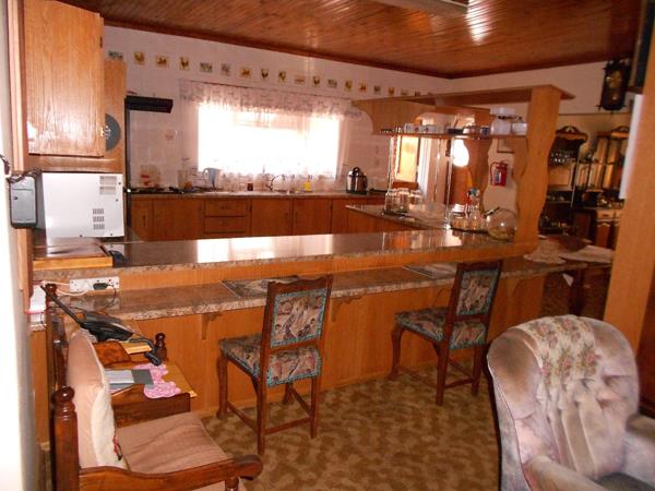 A wooden kitchen is complete with built-in cupboards, electric stove, double oven and extractor fan. There is a separate scullery, space for wet appliances and double sink which has access to the well sized lapa with a built-in braai and a ceiling fan. Perfect space for that family reunion and Sunday out door lunch.
