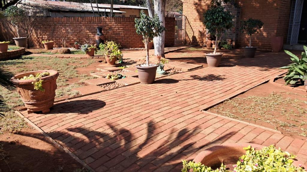 The garden is supported by a borehole and three JoJo tanks (2 and times2 500 L, 1 and times2 000 L) for water storage. Additional features include prepaid electricity, a manually operated double garage, an electric fence, remote-controlled gate, alarm system, outside toilet, and a versatile outbuilding suitable for storage, staff accommodation, a gym, or a study.