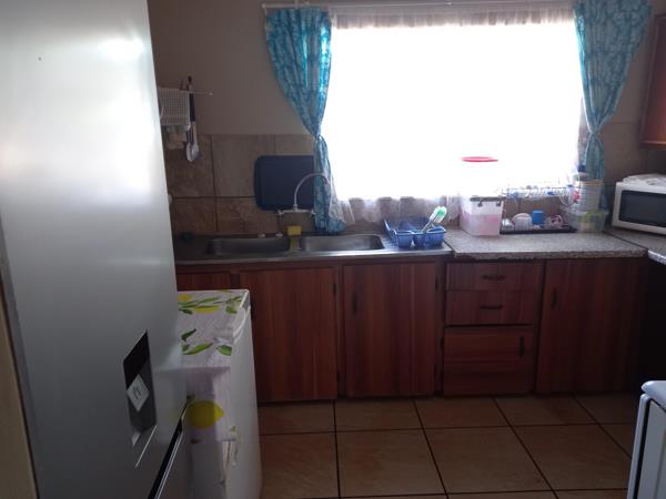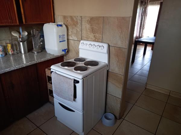 There are 3 X bedrooms with cupboards and tiled floorsthe fan in the main bedroom.