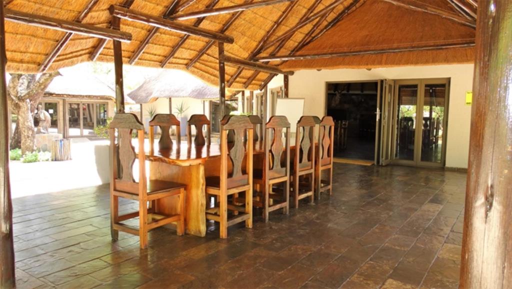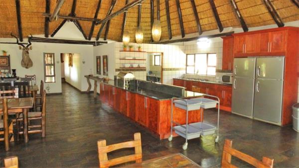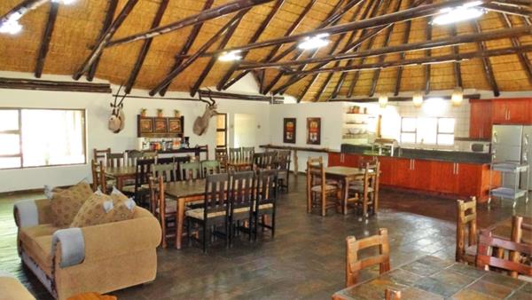 This areas main camp has a beautiful layout with a central kitchen, dining room for more than 45 people, lounge with a big screen DSTV, conference facilities for more than 45 people, swimming pool and Jacuzzi with a unique bushveld bar. The chalets are neat thatch roofed chalets with a green lawn between bushveld trees.