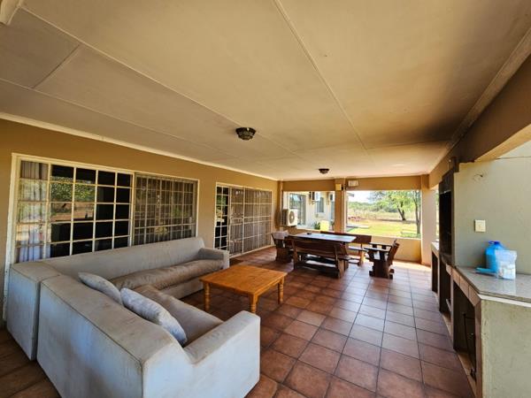 Patio andamp Braai Area: A spacious undercover patio with a built-in braai, perfect for outdoor entertaining. Enjoy the adjacent swimming pool, ideal for relaxation and recreation.