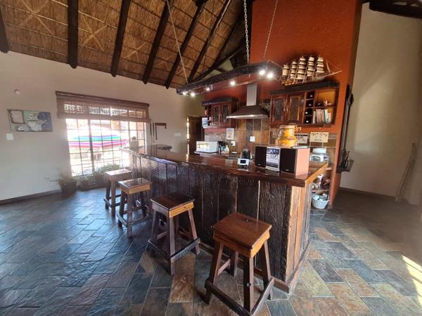 The main house is both spacious and comfortable, with large windows that seamlessly bring the outdoors in. The open-plan dining room and lounge blend effortlessly with the bar area. This space boasts a double-volume roof, exposed beams, and a built-in fireplace, creating a cozy and inviting atmosphere. The kitchen offers ample storage space and includes a large walk-in pantry. Surrounding the main house are various patios and entertainment areas, including an open-air patio and boma with unforgettable farm views. Adjacent is a comfortably sized covered patio, perfect for intimate gatherings, complete with a built-in braai. On the southern side of the house, you''ll find another covered patio featuring a communal swimming pool, shower, toilet, and basin.