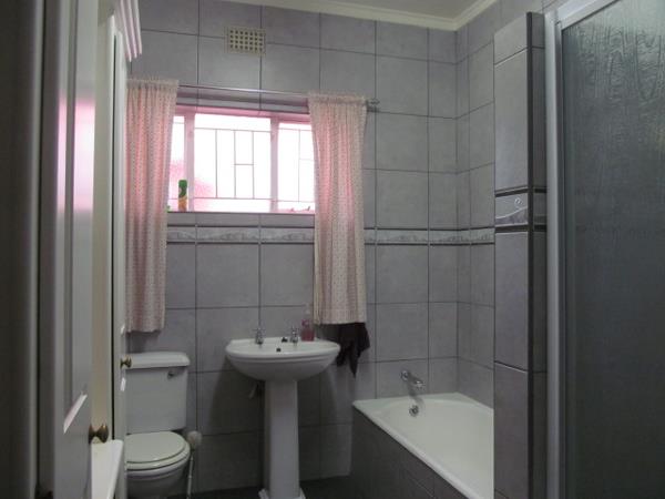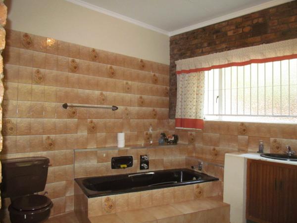 This spacious family home is not to be missed out on: It offers a private lounge, openplan tv and diningroom, 4 bedrooms & 3 bathrooms (of which 2 are en-suite). The well planned kitchen has a separate pantry & a scullery. There is a patio and a pool. The out building consists of a laundry, the double garage, a stoor room and servants quarters. Situated in the backyard is a cold storage and a slaughter room . The well-maintained garden has an equipped bore-hole plus garden irrigation.