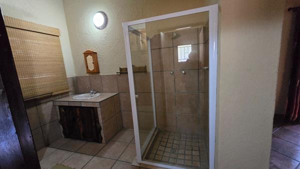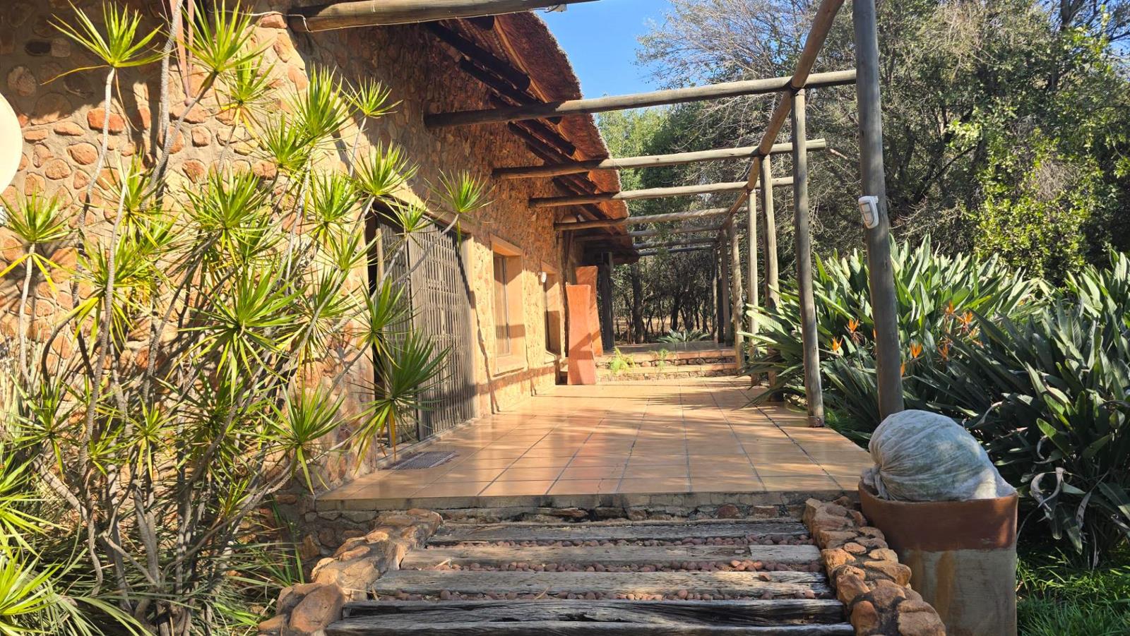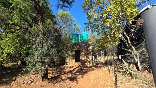 The property boasts a new, thatch-roofed house of absolutely excellent stone construction featuring two en-suite bedrooms, Spacious open plan kitchen and living areas with solid wood cupboards, even in the study that can be used as a third bedroom and lending a lovely ambiance to the house. The dwelling is nestled in a beautiful and well cultivated garden with proper irrigation system and enclosed with high standard electrified security fence and remote-controlled gates. Security further include alarm systems, beams and proper burglar bars.