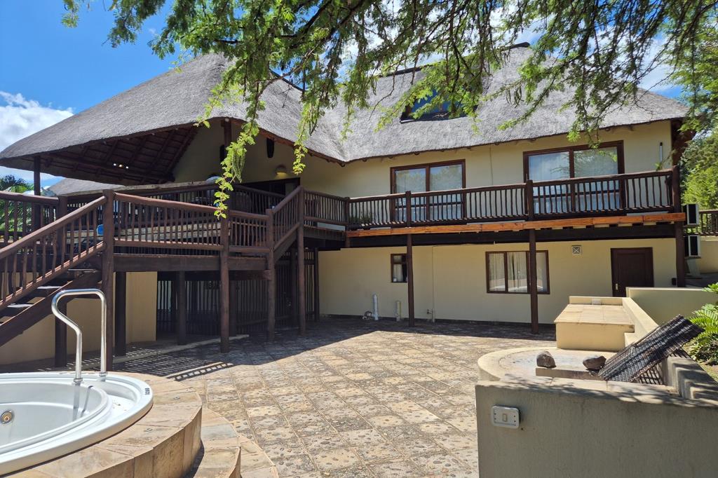 This 5 bedroom house is new to the market in Blyde Wildlife Estate. Located on a secure corner and private stand with your own water pools in front of your home and with views of the Drakensberg Mountains. Double paved road entry with garden, pool, double garage, jacuzzi ,built in safe, two lounges, big kitchen with scullery, 2 dining areas linen/washing area with maids quarters and with all the furniture.