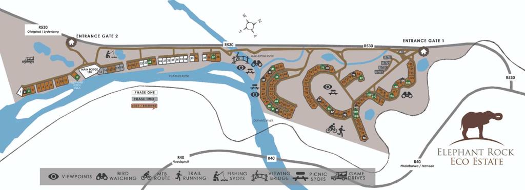 Elephant Rock Eco Estate boasts well-maintained gravel roads and features catch-and-release fishing dams, along with roaming wildlife throughout the estate, further enhancing its eco-friendly appeal. The estate is secured with electrified fencing and has two security gates with 24-hour manned security, ensuring peace of mind for its residents.