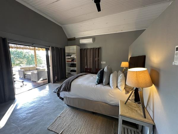 This exceptional 5-bedroom bush home is set on the banks of the flowing Blyde River, offering a rare opportunity to own riverfront property in one of the most scenic and biodiverse areas of the Lowveld. With sweeping views across a grassy floodplain and into lush riverine trees, the property is a sanctuary of tranquillity, where the sounds of flowing water and the call of the fish eagle fill the air. Designed for either permanent living or holiday use, the home combines practical layout with natural charm, including spacious living areas, thoughtful finishes, and multiple outdoor spaces that embrace the surrounding beauty. The home is located within a secure 2,500 ha private reserve that supports a wide variety of game and birdlife and is conveniently just 10 km from Hoedspruit.