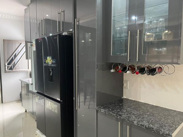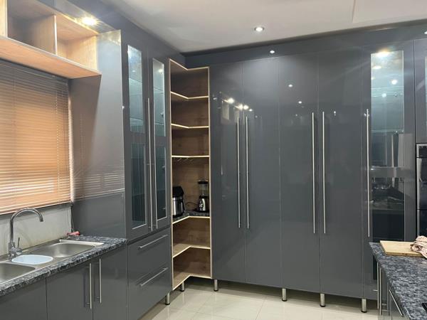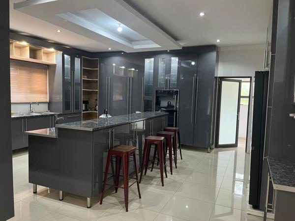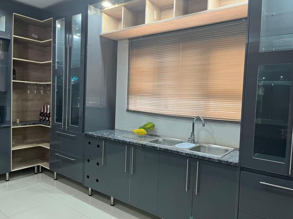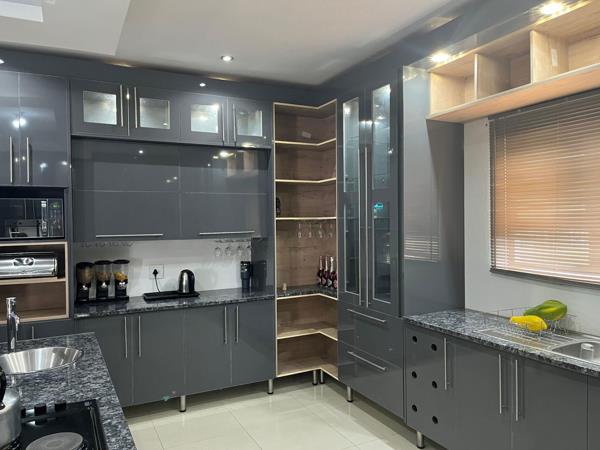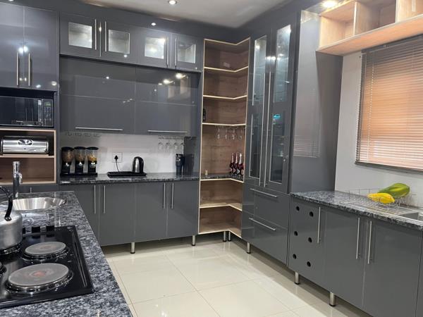 Modern Family Home with Separate Cottage in Kampersrus. Nestled at the foot of the Northern Drakensberg Mountains, this brand-new, up-market family home offers exceptional finishes and ample space. The open-plan design seamlessly connects the lounge, dining area, and a stunning kitchen with high-end fixtures, including built-in cupboards, an island with an electric hob, double eye-level ovens, and granite countertops. A separate scullery offers additional storage.