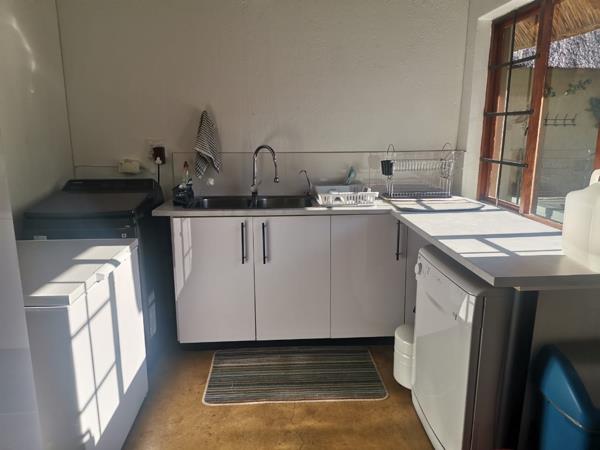 Kampersrus is known for its cooler climate compared to nearby Hoedspruit and offers a safe, picturesque environment. Additional features include an alarm system and a secure area for cats or small pets. The yard size is 465 square metres, offering enough space to enjoy outdoor living without overwhelming maintenance.