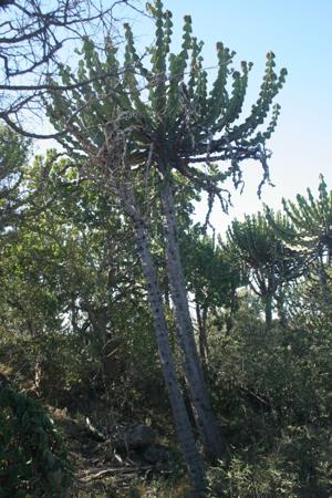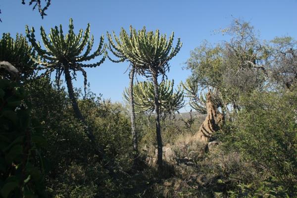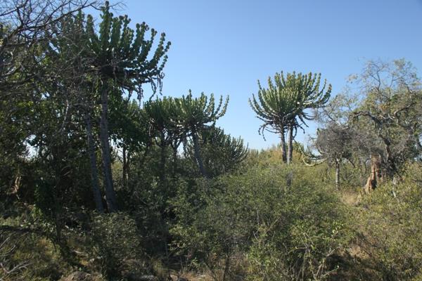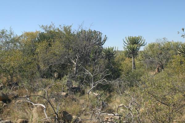 The stand is one of four remaining stands and 7,000 sq meters in size. Its located on a ridge with views of the Drakensberg mountains. There are no neighbouring stands giving it maximum privacy. There are several interesting trees such as Euphorbia, shepherds tree, corkwood and Rock fig. In addition to the trees there are also interesting rocky outcrops on the stand.