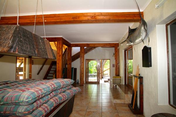 This property immediately calms one and sets the tone for peace and relaxation it is set on a 21ha stand within Ndlovumzi Private Nature Reserve close to Hoedspruit. It offers four separate residential dwellings, the main unit has two downstairs bedrooms, one of which is en-suite and the other has access to a separate shower, basin and toilet. There are three additional bedrooms located on the upper landing all of which are en-suite with shower, basin and toilet and each room opens up onto a spacious open-air tiled patio. The large open plan kitchen and dining area with separate laundry and pantry leads into a spacious entertainment/living room. The elevated outside covered patio and wonderful barbecue/braai area is set under large trees. This is the perfect spot for bird watching and looking for Hippo in the river below. There are three additional chalets, each of these overlooking the Olifants River these units have a bedroom with separate shower, basin and toilet. Crossing an elevated wooden walkway over a drainage line, truly enchanting with all the foliage as you cross the bridge, accesses one of the chalets.