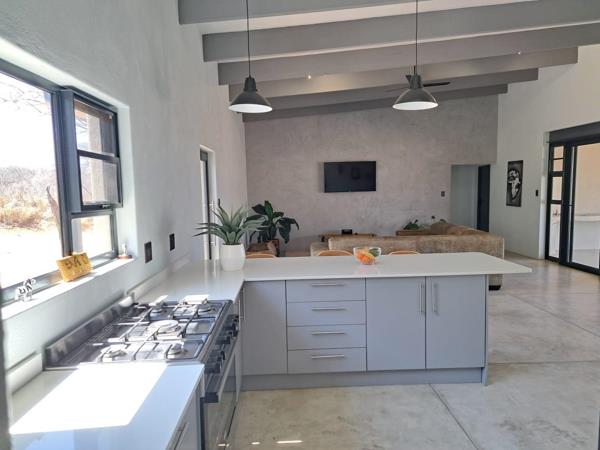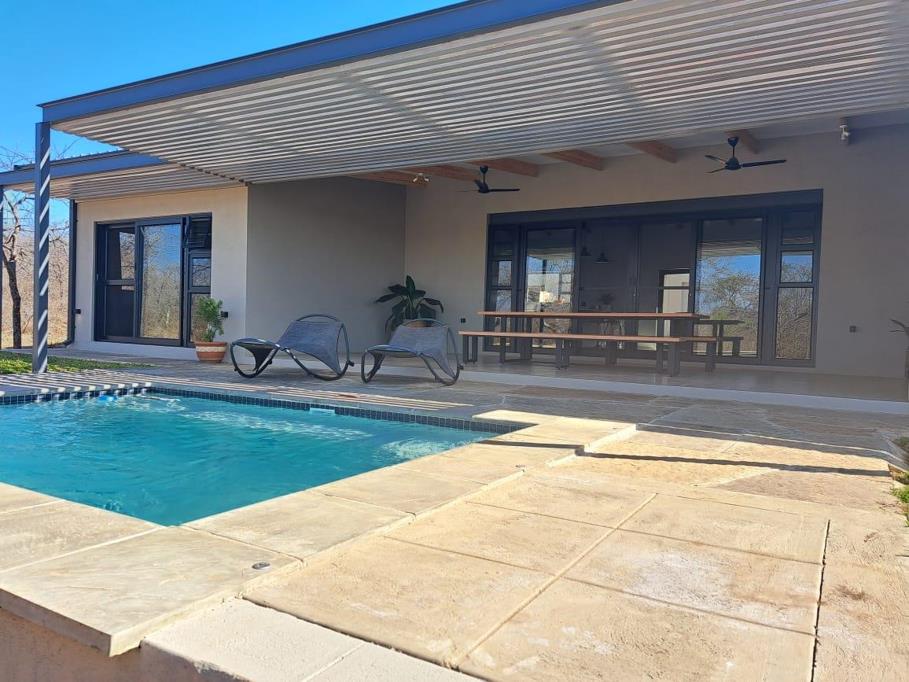 The spacious bedrooms are designed with comfort and elegance in mind, offering ample natural light and high ceilings - all bedrooms are equipped with air-conditioners and ceiling fans. The master suite boasts a luxurious full en-suite bathroom with an inside and outside shower. The bedroom has sliding doors opening up onto the garden, the spacious roof-covered patio and the sparkling pool, overlooking the bushveld - a private oasis for relaxation.