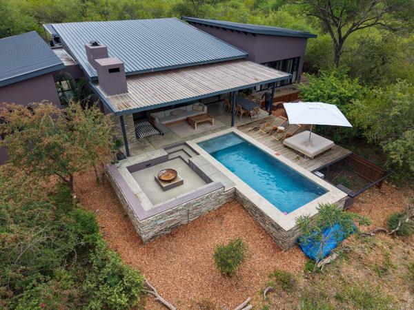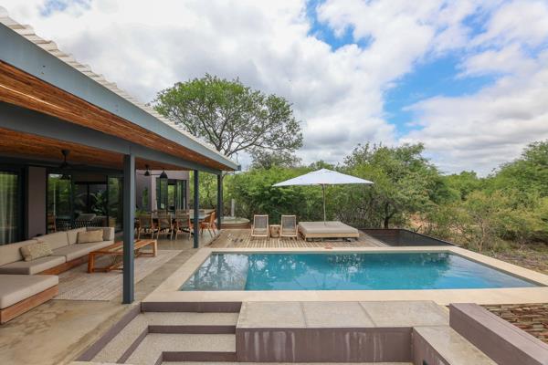 Discover an exceptional modern residence designed for luxurious bushveld living within the prestigious Zandspruit Bush and Aero Estate in Hoedspruit. This property boasts a striking contemporary architectural design with clean lines and high-quality finishes, offering seamless indoor-outdoor flow through expansive sliding glass doors. The open-plan layout integrates a spacious lounge, dining area, and a well-appointed kitchen featuring a pantry, all complemented by air conditioning for year-round comfort. A dedicated study provides a versatile space for work or relaxation.