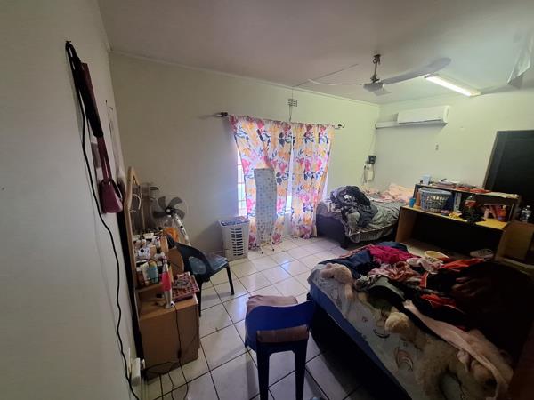 Main bedroom has double build in cupboards, tiled floor, air-conditioner and ceiling fan.