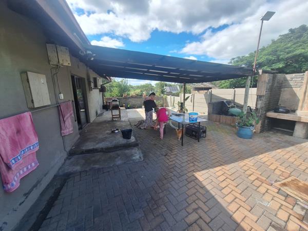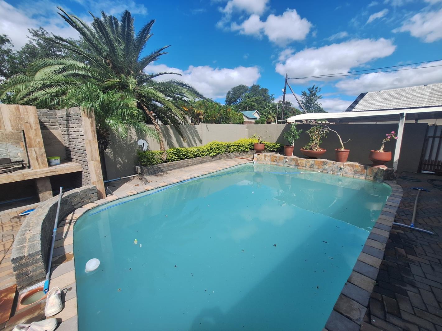 Private swimming pool area with big zink roof perfect for entertaining when it''s raining, build in braai.