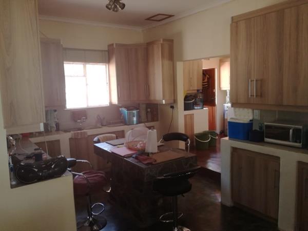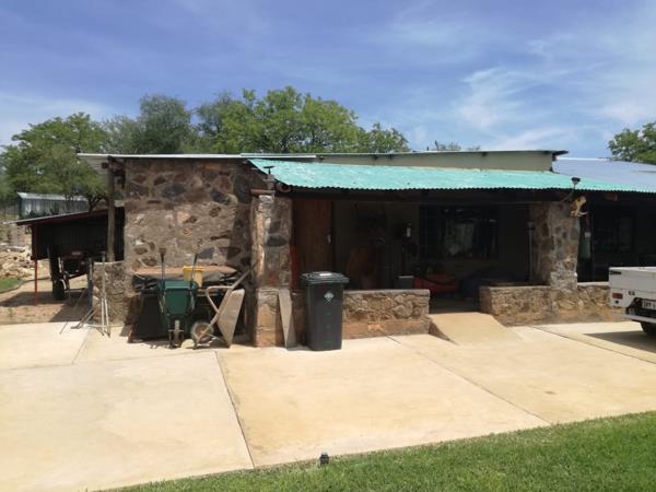 Through the property there is a Escom power-line but this is not connected. The owner made use of solar power allowing him to be off-grid. The house is a typical farm dwelling that has evolved with the requirements of the family. The open plan lounge, kitchen and dining room with its scullery is fronted by a ''T'' shaped veranda where the vehicles can be stopped under a roof. Embark or alight