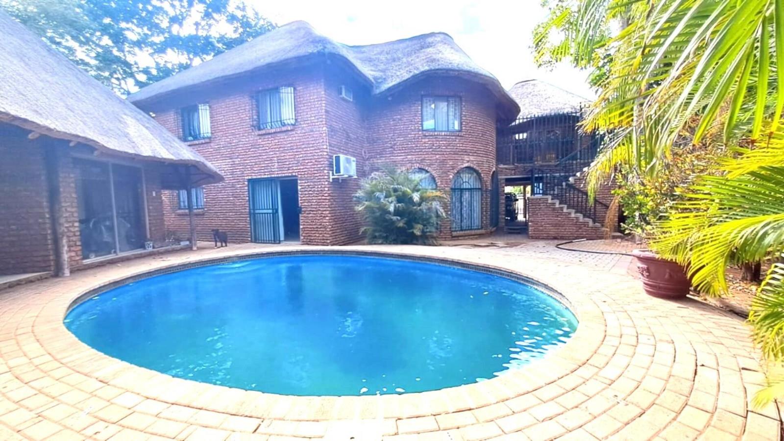 Upstairs, youll find a private studyideal for working from homeas well as an entertainment or gaming room that opens onto a patio leading to the inviting pool and thatched Lapa braai area, perfect for outdoor living and entertaining.