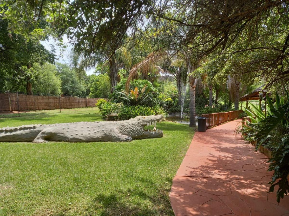 The property features a variety of tourism and entertainment facilities designed to attract visitors. The thatch-roofed restaurant and bar, equipped with an industrial kitchen and cold room, offers an inviting dining experience. Guests can enjoy shaded outdoor dining overlooking a serene dam, as well as a swimming pool with water slides set amidst manicured lawns. A curio shop with office space enhances the guest experience, while the on-site crocodile leather factory adds an additional layer of allure.