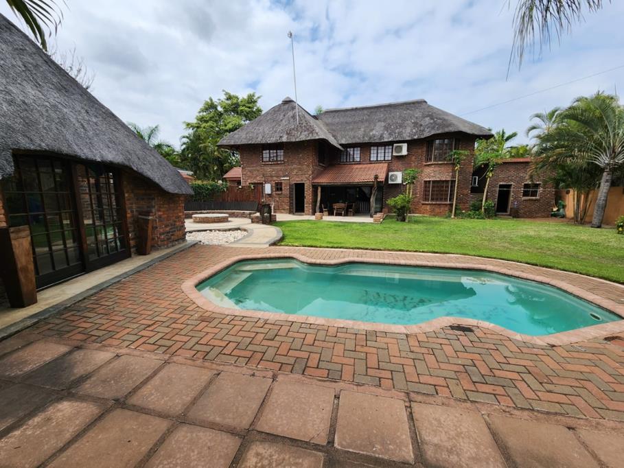 This beautiful double-story face brick home perfectly blends style, comfort, and functionality. It features a stunning kitchen with sleeper-wood cabinets, a gas stove, a double oven, a separate scullery, and a pantry. The home includes five generously sized bedrooms, all equipped with built-in cupboards and air conditioning. Three of the bedrooms offer en-suite bathrooms, while one can easily be converted into a study. Enjoy relaxed living in the spacious lounge and TV room, which opens onto a lovely patio ideal for entertaining. Upstairs, you will find a dining room and a cozy entertainment area.
