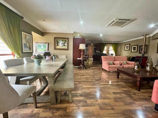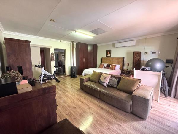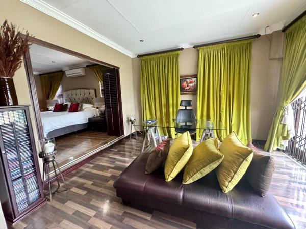 The home features four spacious bedrooms with built-in wooden cupboards. Two neat bathrooms with walk-in showers (the main bathroom is en-suite and the sharing bathroom features a separate toilet. There is an additional guest toilet to serve visiting family and guests. The spacious open plan living area comprises the lounge and dining room and absolutely forms the heart of this property as a bright and welcoming space ideal for relaxing or entertaining. The kitchen presents with a sleek and stylish design with dedicated spaces for appliances. It features a comfortable breakfast counter together with an eye-level oven, gas- and electrical hob. The home features a office/study room which can serve a multi-purpose as required.