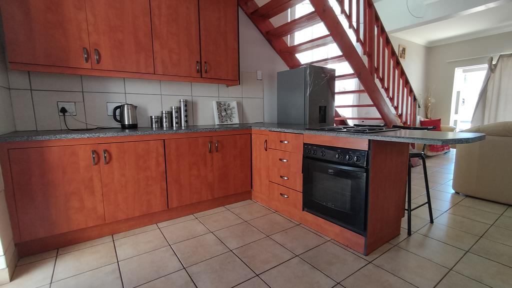 This 3-bedroom townhouse is situated in a secured estate with 24-hour security and safe for the whole family. The property offers 3 bedrooms, with the main bedrooms bathroom being en-suite, all with built-in cupboards on the first floor, with 2 bathrooms and an upstairs lounge / dining room. With an open plan lounge and kitchen downstairs, you also find a single garage. The estate is just within walking distance to Mall of the North, private schools and all amenities and easy to access transport.