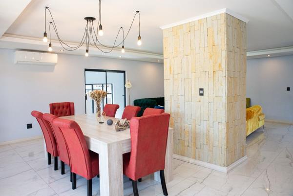Experience luxury living in this impeccably designed 6-bedroom family home, nestled within a serene and secure estate. This newly built masterpiece blends contemporary elegance with thoughtful functionality, offering a sanctuary perfectly suited to modern family life. From the grand entrance to the open-concept living areas, every corner of this home is crafted to elevate comfort and convenience. Expansive windows invite natural light into the spacious living and dining areas, while the private lounge and upstairs family room provide cozy spaces to unwind. The gourmet kitchen, equipped with top-tier appliances, granite finishes, and dual hob systems, serves as the heart of the homeideal for both everyday meals and memorable entertaining.