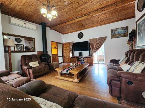 The main house is thoughtfully designed with 3 large bedrooms, each featuring cozy finishes and ample cupboard space. The main bedroom boasts an en-suite bathroom and air-conditioning for year-round comfort. The living areas include a family room with an air conditioner and a wood-burning fireplace, perfect for relaxing on cooler days. A spacious lounge flows into the dining room, creating a warm and inviting atmosphere for family meals and entertaining guests.