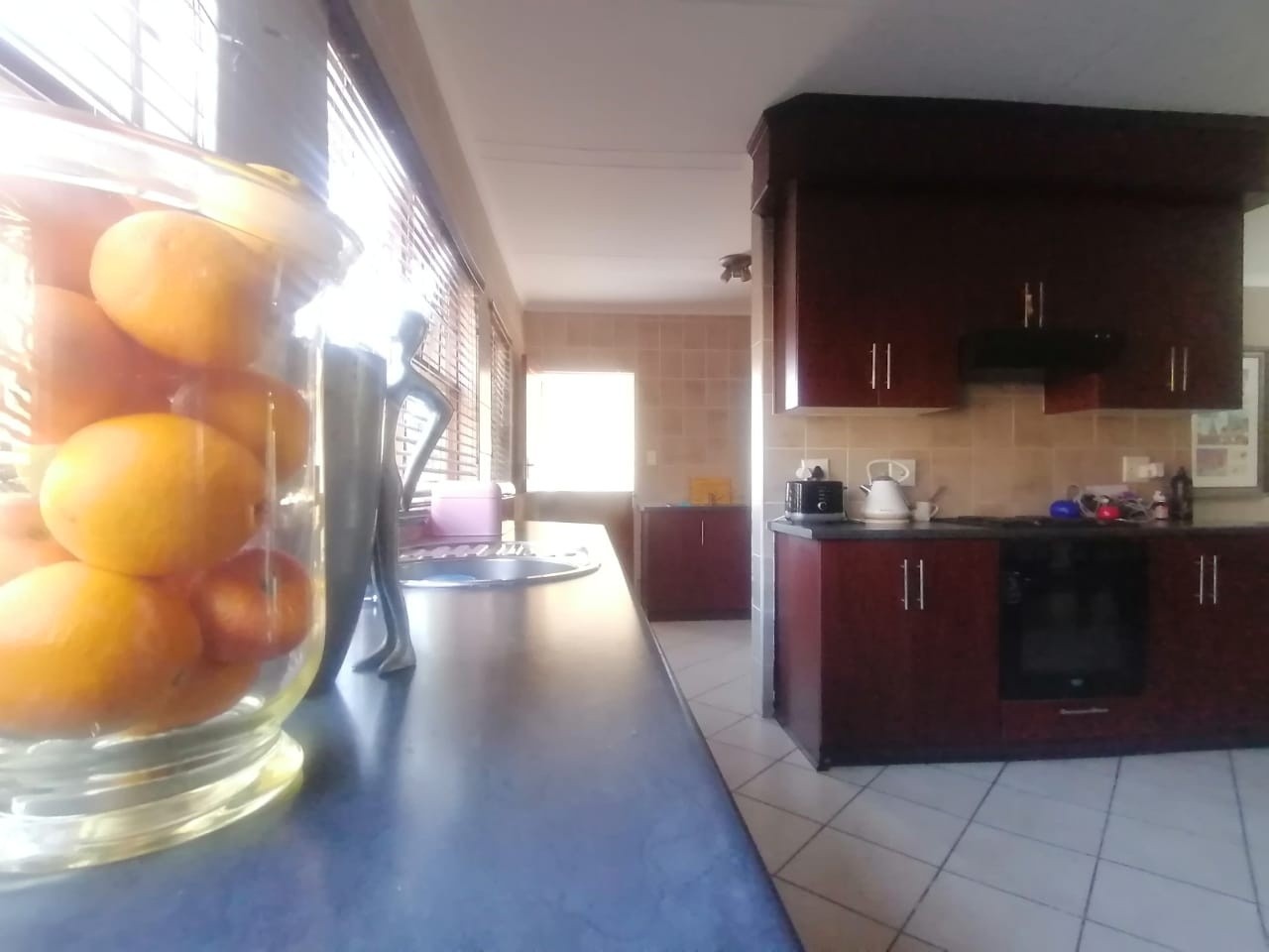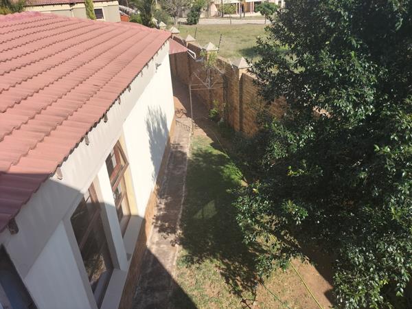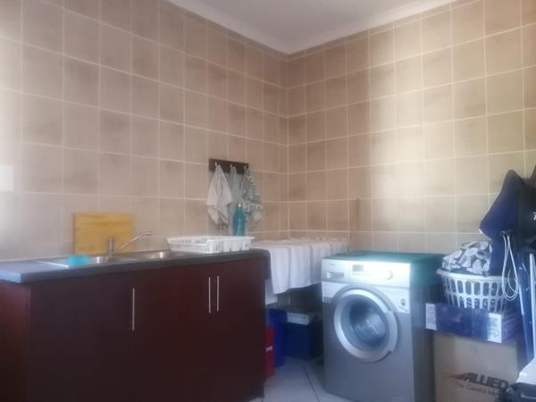 This double-story house has 3 bedrooms, 3 bathrooms, an open-plan lounge, a dining room, and a fitted kitchen with a scullery/laundry. The property also has one garage, a small garden, a JoJo tank, an outside toilet, a balcony, and a braai area.