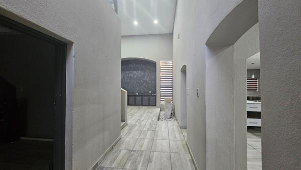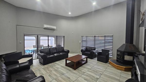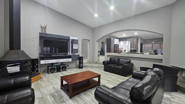 The entertainment area is truly out of this world, featuring heated pools and a sunken braai area. Equipped with solar panels and inverters, this home embraces sustainable living. A strong borehole ensures a reliable water supply, highlighting its self-sufficiency and eco-conscious design.