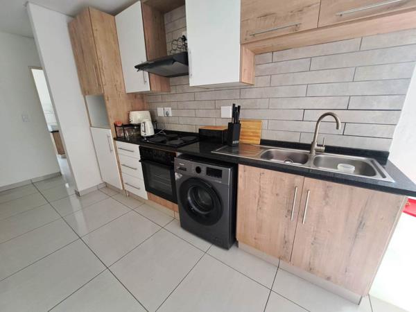 Open Plan Kitchen: Enjoy a spacious layout with granite countertops, ideal for entertaining. The kitchen comes equipped with space and connections for a front-loader washing machine, plus stylish laminated cupboards for ample storage.