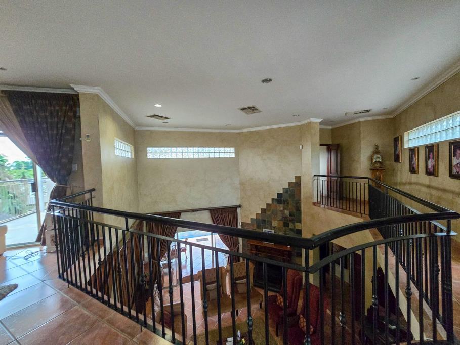 Venturing upstairs, you''ll find four generously sized bedrooms, each adorned with tiled floors and built-in cupboards, providing ample storage. Every bedroom enjoys its own private balcony, extending the living space outdoors and allowing for beautiful views of the surrounding area. The main bedroom is a true retreat, featuring a luxurious walk-in closet and an en-suite bathroom fitted with a relaxing bath, invigorating shower, double basin, and toilet, ensuring a serene start to your day. The bathroom has a captivating balcony.